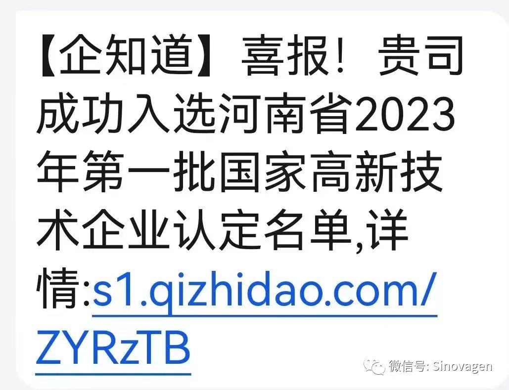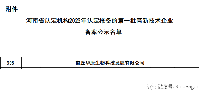 2023年11月22日,商丘华原生物科技发展有限公司收到通知已经成功入选河南省2023年第一批国家高新技术企业认定名单。