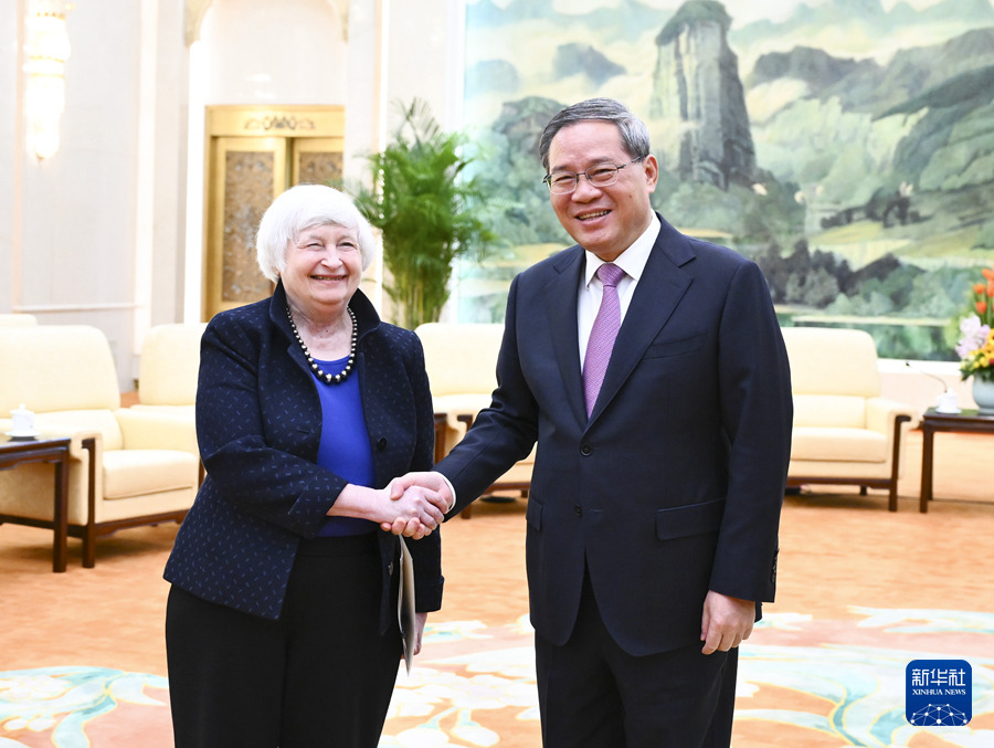 新华社北京4月7日电 国务院总理李强4月7日上午在北京人民大会堂会见美国财政部长耶伦。