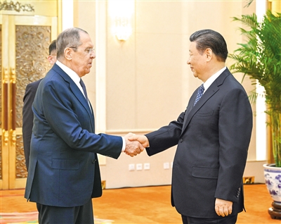 习近平请拉夫罗夫向普京总统转达诚挚问候。习近平指出,今年是中俄建交75周年。中俄两国携手走出了一条大国、邻国和睦相处、合作共赢的崭新道路,造福了两国和两国人民,也为国际公平正义贡献了智慧和力量。我和普京总统一致同意,继续保持密切交往,确保中俄关系始终顺利稳定向前发展。双方要以庆祝建交75周年和举办中俄文化年为契机,全面落实我和普京总统达成的一系列重要共识。