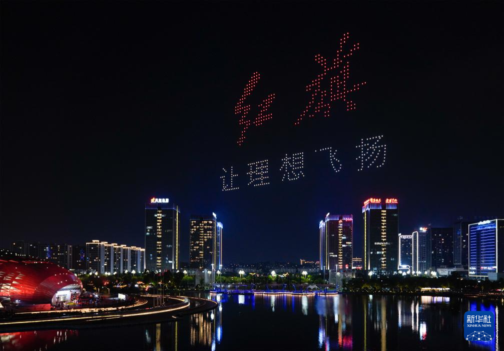 5月10日晚,2024架无人机点亮浙江德清夜空,展示中国品牌风采,为世界品牌盛会增彩。
