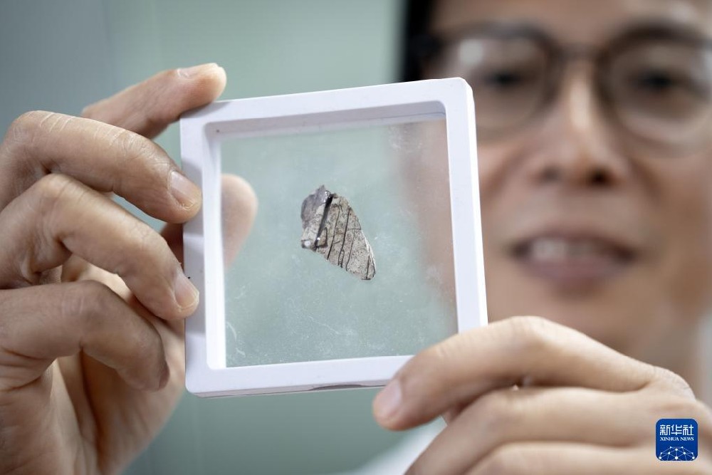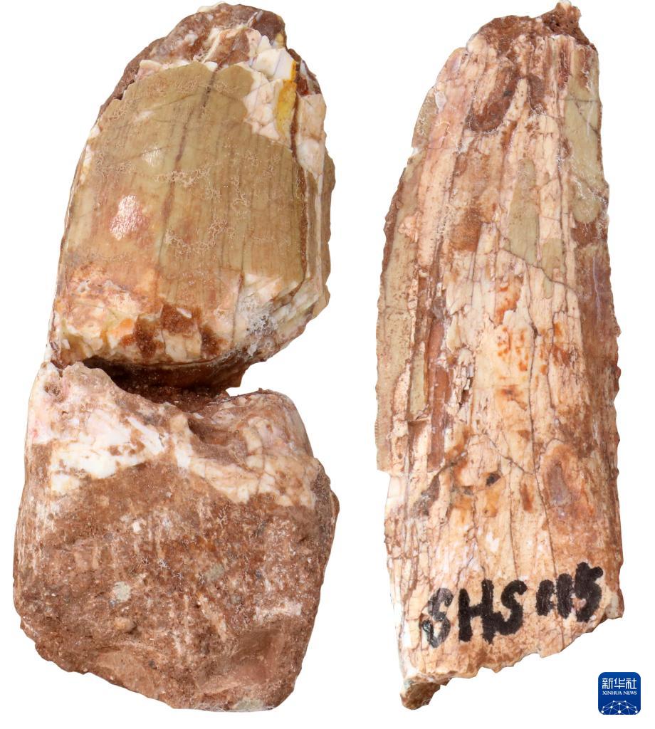 2024年5月14日,研究人员展示经过清理修复的暴龙超科牙齿化石。