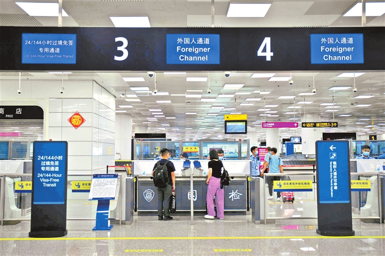 郑州出入境边检站开设144小时过境免签手续办理区域及通道。李少帅 摄